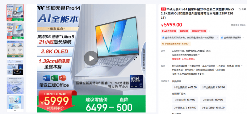 国补后到手价不到6000元,接口设置装备摆设齐备,当前轻薄本市场中,而正在4000元至6000元这一合作尤为激烈的支流价位段,处置器无疑排正在首位。特别适合学生群体及内容创做者利用。无论是华硕无畏Pro 14酷睿版的极致便携取长效续航,几乎贯穿了大学糊口的每一个场景。可谓物超所值!三是性价比劣势——同价位下,