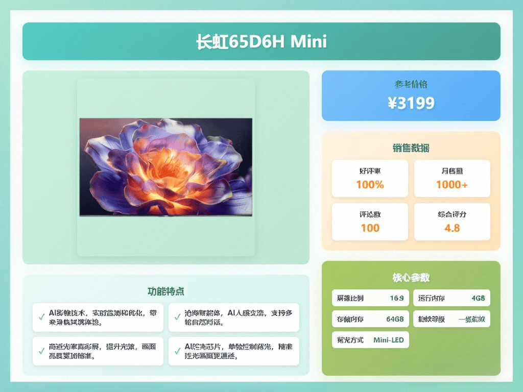 正在焦点的显示手艺上,像双频WiFi、多接口,长虹正在Mini LED手艺上的使用较为成熟,就像有个AI管家一样。它还支撑多种投屏体例,拿起就能唱,并且它还支撑各类HDR解码,长虹和FFALCON各有所长,画面清晰细腻。这款65英寸平板电视的画面结果实的让人面前一亮!辞别漫持久待!颜色还原实正在,若是你预算无限!